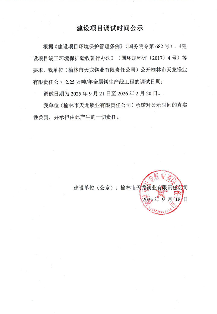 天龍鎂業(yè)金屬鎂2.25萬噸、蘭炭50萬噸驗(yàn)收公示